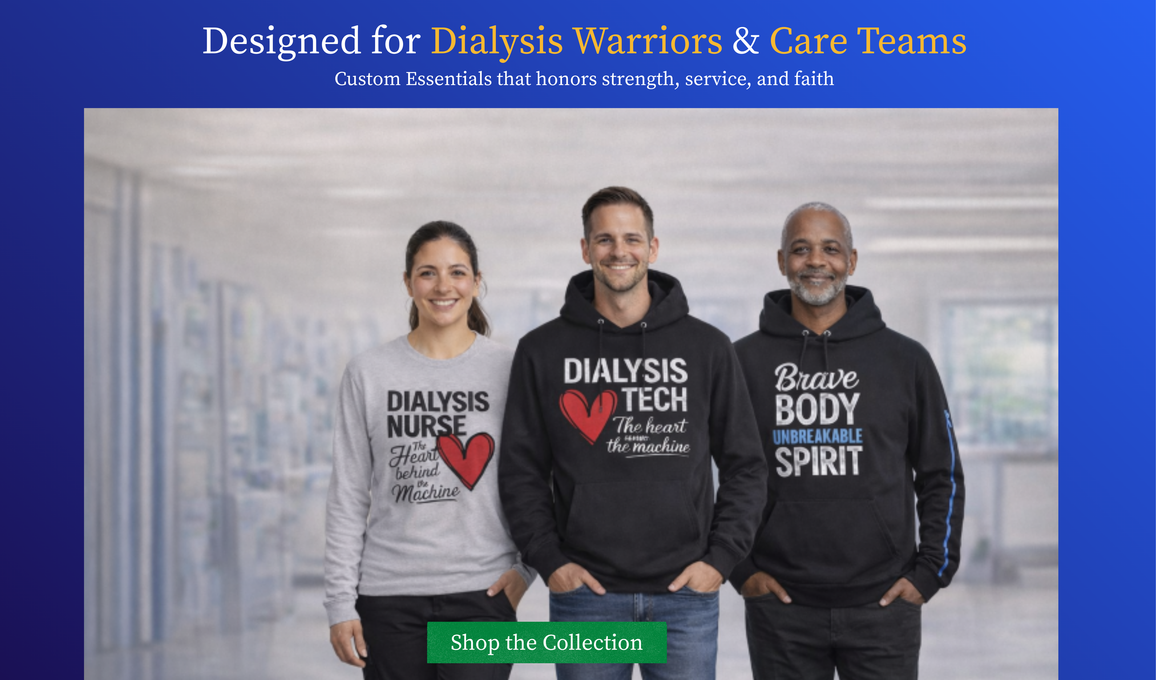 Designed with care for dialysis staff and patients, our products bring comfort, convenience, and support to everyday life. From tech bags and cups to cozy clothing, everything we offer is made to fit your routine and make each day a little easier.